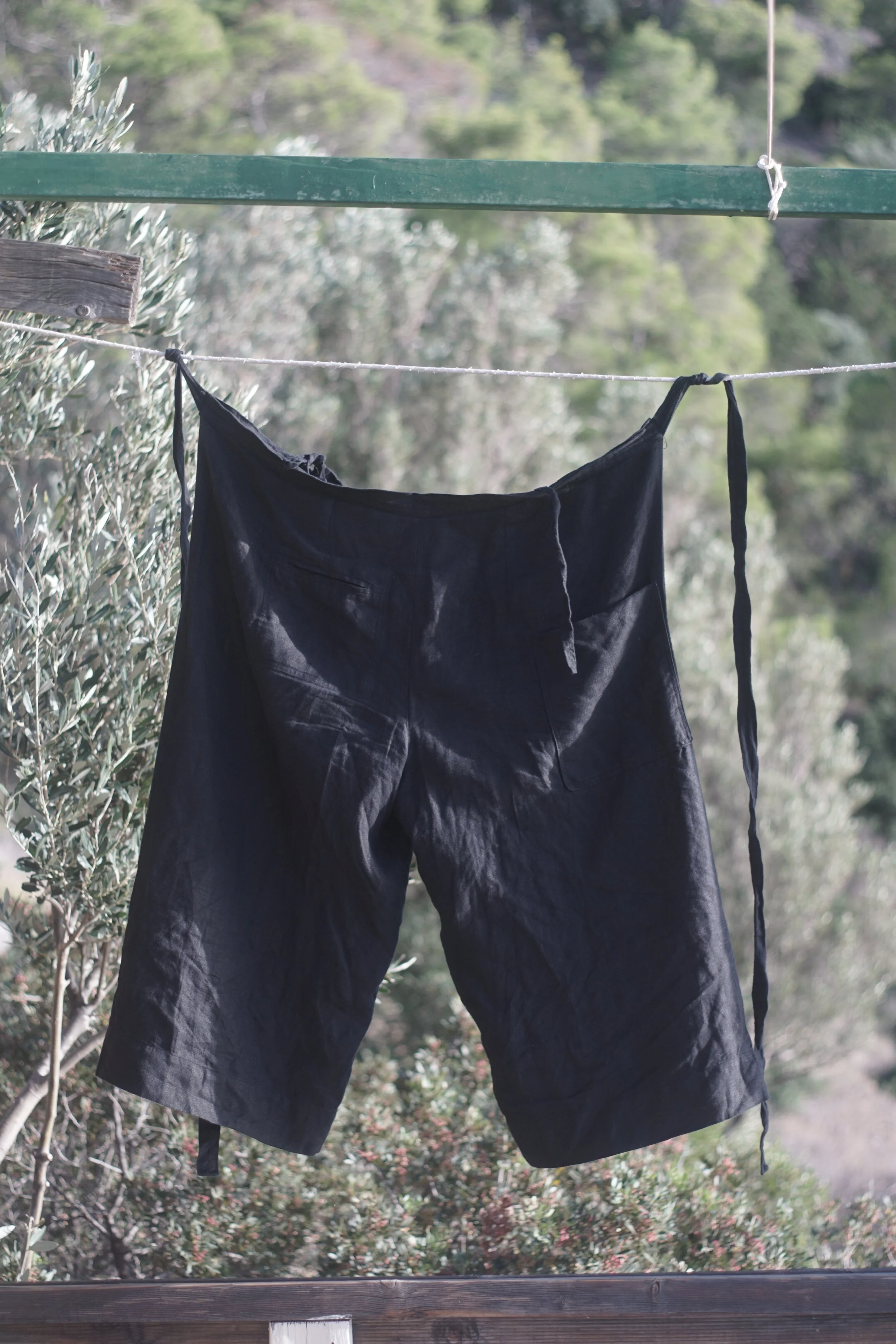 a mighty pair of wide leg trousers enfolding the body generously in flowing cloth