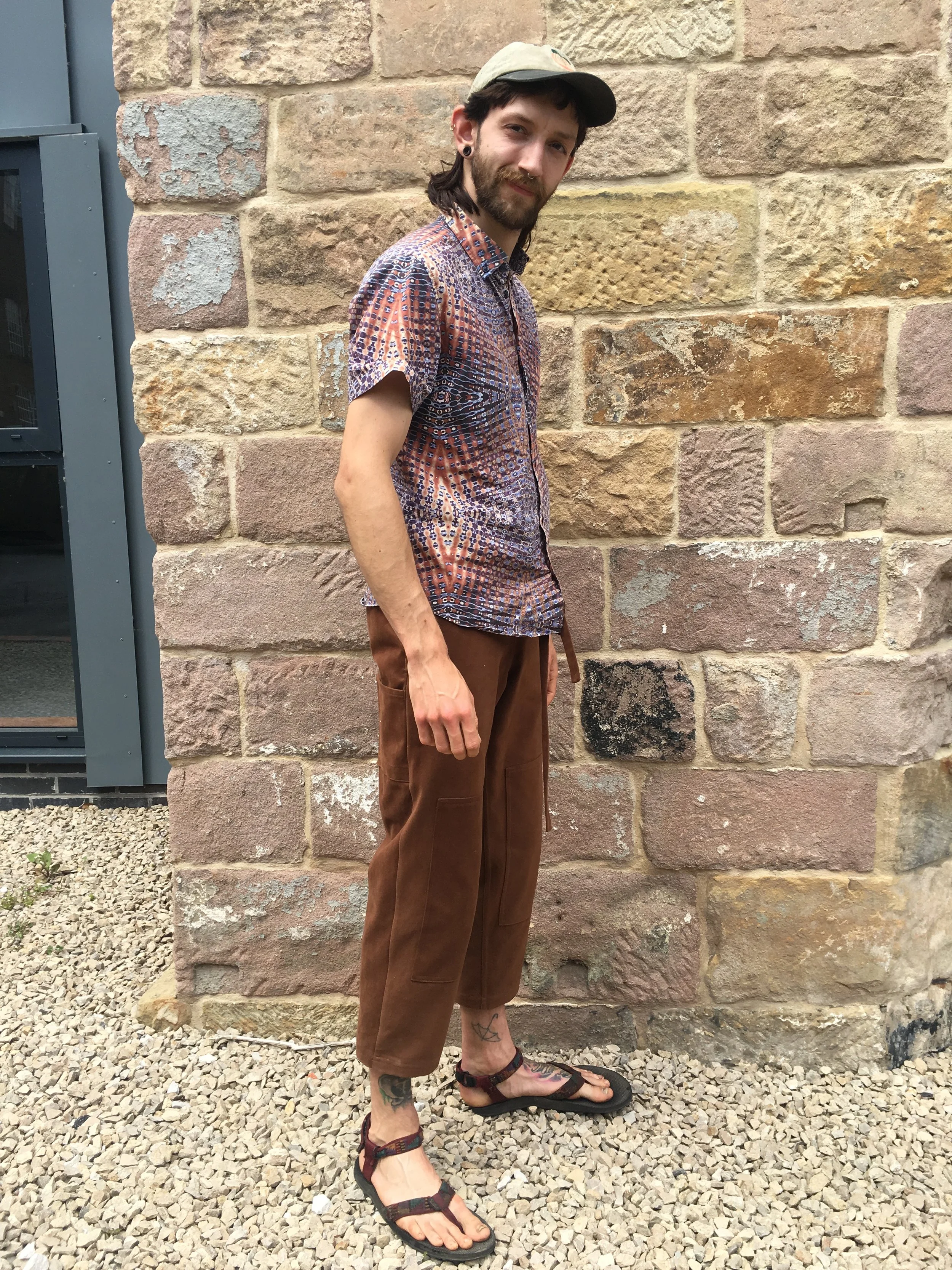 dusty cotton drill ~ navy or rust brown ~ a heavyweight denim like cloth with a sanded soft dusty feel for a soft weighty trouser